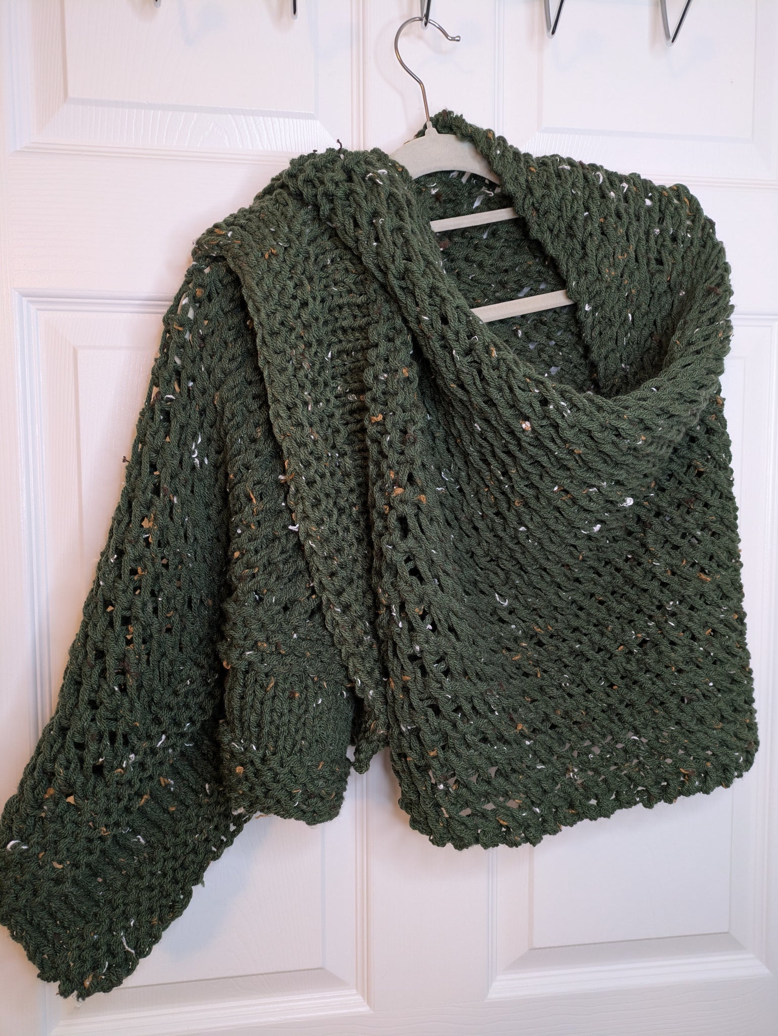 Wrap yourself in comfort with That’s A Wrap! This 60" x 20" cozy accessory in camo tweed - a forest green with multi-color flecks - features an open weave middle creating a breathable yet warm wrap. Perfect for layering on chilly days, its soft, snuggly feel will have you reaching for it often!
