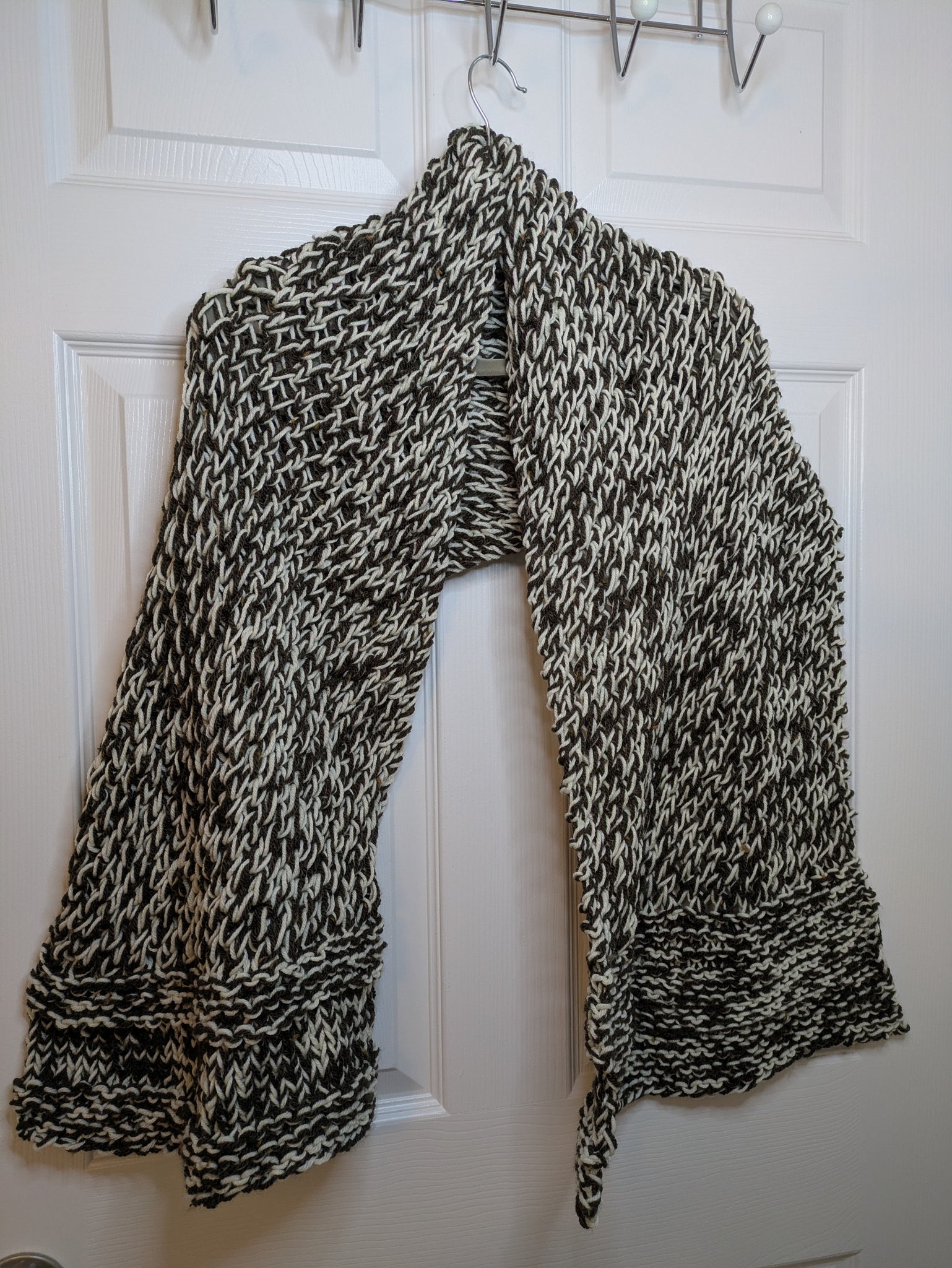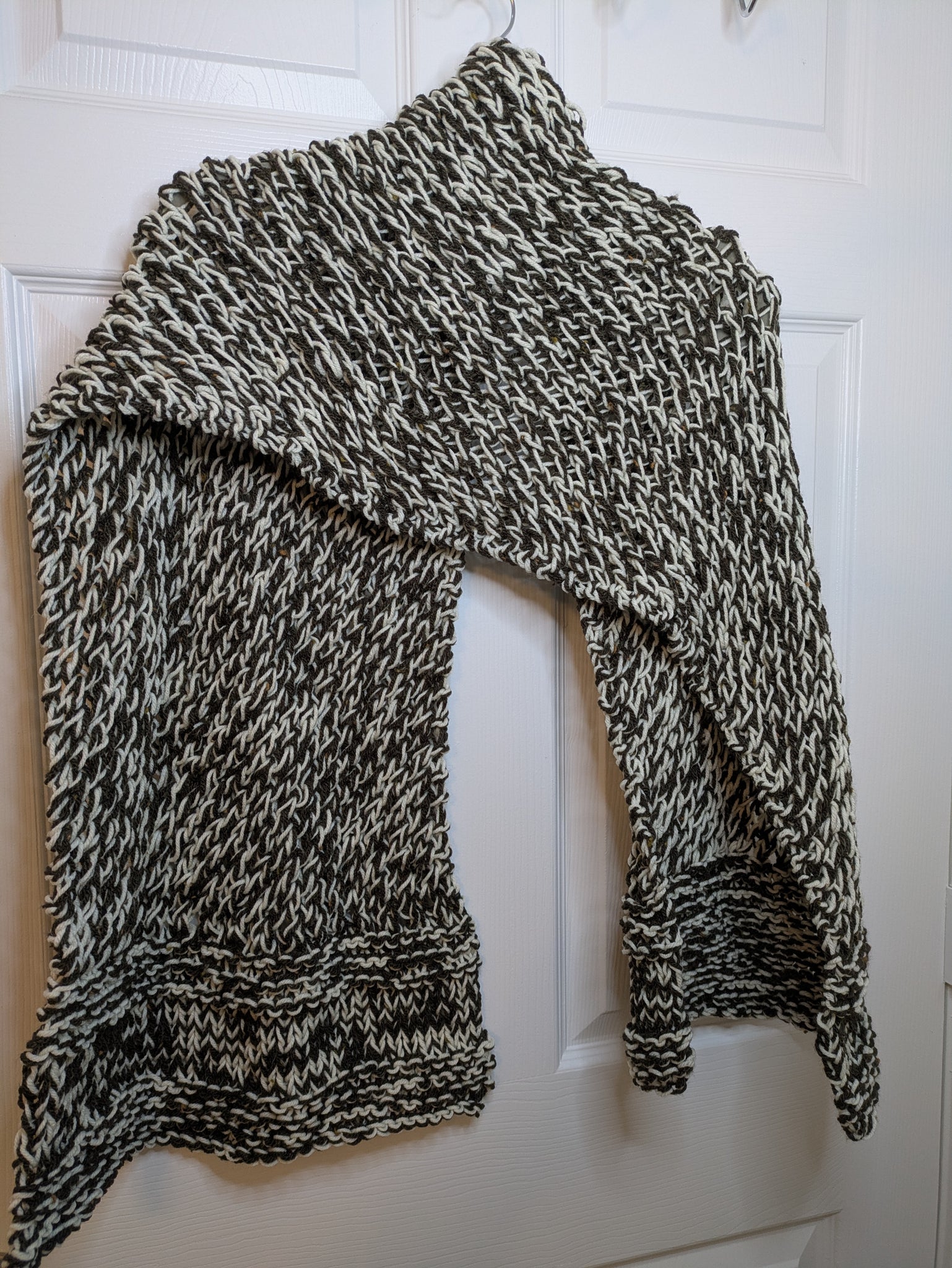 Wrap yourself in comfort with That’s A Wrap! This 60" x 20" cozy accessory in coal (a dark brown with multi-colored flecks) and aran (off-white) features an open weave middle creating a breathable yet warm wrap. Perfect for layering on chilly days, its soft, snuggly feel will have you reaching for it often!